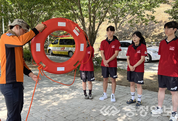 충북 진천소방서는 지난 28일 농다리 일원에서 우석대학교 학생 10여 명을 구성된 ‘119시민수상구조대’ 발대식을 가졌다.